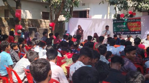 ক্যাপশন: “একুশ: জাতীয় জাগরণের প্রেরণা” শীর্ষক আলোচনা সভা প্রধান অতিথি হিসেবে উপস্থিত ছিলেন মান্যবর বিভাগীয় কমিশনার, রাজশাহী ড. আ. ন. ম. বজলুর রশীদ।